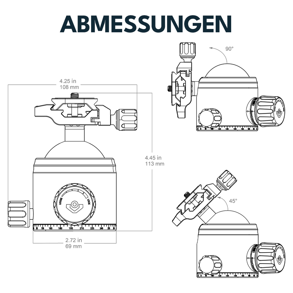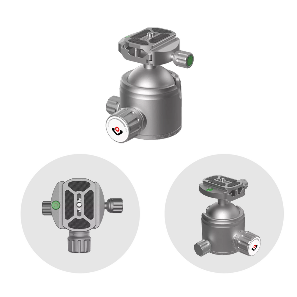 Kugelkopf zur Anbringung auf Stativen, dieser ermöglicht 360° horizontale Drehung und 90° Neigung für eine flexible Positionierung. Passend zum Dreibein RSCF-T01